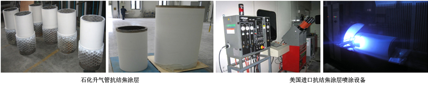 七二五所自主研發(fā)的抗結(jié)焦涂層是具有抑制結(jié)焦、抗?jié)B碳、隔熱耐磨等優(yōu)異性能的陶瓷基復(fù)合涂層,抗結(jié)焦涂層掛片經(jīng)延遲焦化裝置上的工程化考核證明抑制結(jié)焦率達(dá)80%以上,是國(guó)內(nèi)唯一已經(jīng)在石化升氣管上獲得實(shí)際應(yīng)用的涂層產(chǎn)品。